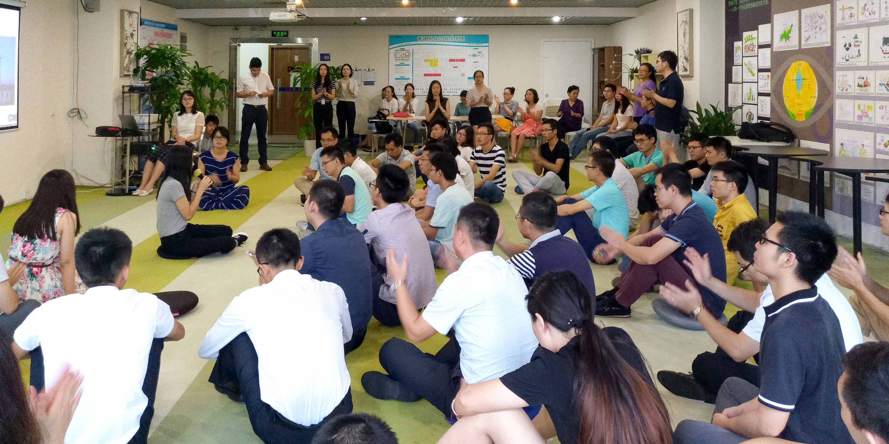 從周一到周五,悅晨夕會喚醒每個安健人的早晨。周一分享日(布谷鳥)、周二儀式日(老鷹)、周三朗讀日(青蛙)、周四心流日(海豚)、周五運動日(袋鼠)。通過五個不同的主題日設置,讓同事之間相互關注與看見、讓員工及時了解公司經營動態、體會幸福、喜悅,收獲健康。