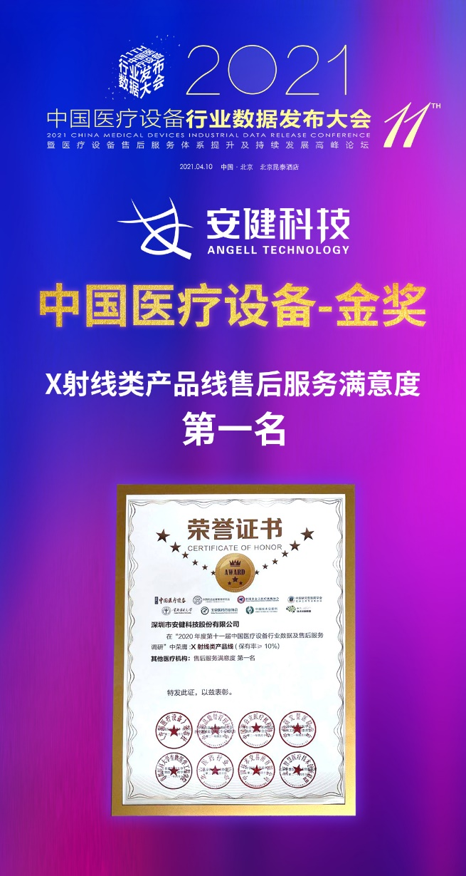 • 榮獲中國醫療設備-金獎 X射線類產品線售后服務滿意度第一名