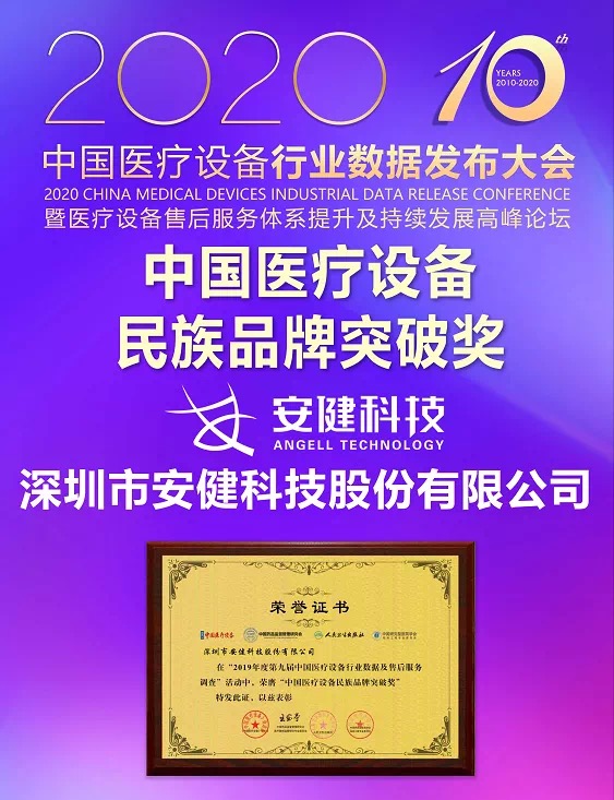 2020年7月4日,“第十屆中國(guó)醫(yī)療設(shè)備行業(yè)數(shù)據(jù)發(fā)布大會(huì)”通過(guò)線上的方式,進(jìn)行全國(guó)直播。大會(huì)由中國(guó)醫(yī)療傳媒集團(tuán)、《中國(guó)醫(yī)療設(shè)備》雜志社等聯(lián)合主辦,邀請(qǐng)國(guó)家衛(wèi)健委、藥監(jiān)總局、科技部、發(fā)改委、信息所,及中華醫(yī)學(xué)會(huì)醫(yī)學(xué)工程學(xué)分會(huì)、中華醫(yī)學(xué)會(huì)影像技術(shù)分會(huì)等學(xué)會(huì)主要領(lǐng)導(dǎo),全國(guó)臨床及臨床工程領(lǐng)域行業(yè)專家、醫(yī)療領(lǐng)域“大數(shù)據(jù)”專家,國(guó)內(nèi)外知名企業(yè)代表以及業(yè)內(nèi)專家等出席。本次大會(huì)安健科技榮獲“民族品牌突破獎(jiǎng)”,品牌實(shí)力再一次贏得業(yè)界肯定。