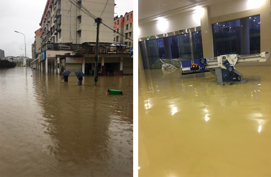 6月24日,對(duì)于安健科技客服工程師洪工來(lái)說(shuō),本是一個(gè)難得的休息日。但是江西北部突降暴雨,臨近景德鎮(zhèn)的縣城已經(jīng)被淹,其中有家醫(yī)院是安健科技的裝機(jī)用戶(hù),其地理位置處于景德鎮(zhèn)的低洼處,醫(yī)院設(shè)備有隨時(shí)可能被淹的風(fēng)險(xiǎn)。洪工得知這個(gè)緊急情況,立馬放棄休息,火速趕往景德鎮(zhèn)。晚上十一點(diǎn)趕到縣城,因到處漲水,只能繞路,將近凌晨方趕到醫(yī)院。醫(yī)院門(mén)前積水已經(jīng)漫過(guò)膝蓋,洪工沒(méi)有時(shí)間等待,挽起褲腿,便沖進(jìn)了醫(yī)院。與院方做了簡(jiǎn)單溝通后,就緊急投入到拆機(jī)工作中,一直忙到次日凌晨7點(diǎn),完成設(shè)備的拆卸與轉(zhuǎn)移,確保了醫(yī)院設(shè)備的安全。