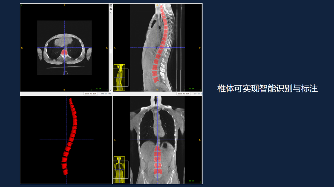 針對目前日益增長的脊柱側彎患者,目前在臨床評價脊柱側凸的主要方法有Cobb角測量法、終板法和椎弓根法,在Cobb角測量之外,脊柱旋轉定量測量也是臨床非常重要的評估信息,而在立位三維狀態下的脊柱評估能更為真實的反映脊柱側凸的問題。目前安健科技完成的X線三維全脊柱測量技術可以實現包括Cobb角、前/后凸角、椎體偏移/旋轉向量圖、椎體旋轉角條形圖、矢/冠狀面垂直軸偏距數據的自動測量,這項技術將為脊柱矯形的臨床診斷帶來從定性到定量的轉變,提供豐富的數據和圖表,為臨床尤其是手術方案的規劃制定提供非常精準的定量化數據支撐,不僅可以對脊柱冠狀面參數進行精準的定量評估,還可對矢狀面包括,頸椎前凸、后凸、腰椎前凸和后凸進行非常精準的評估。