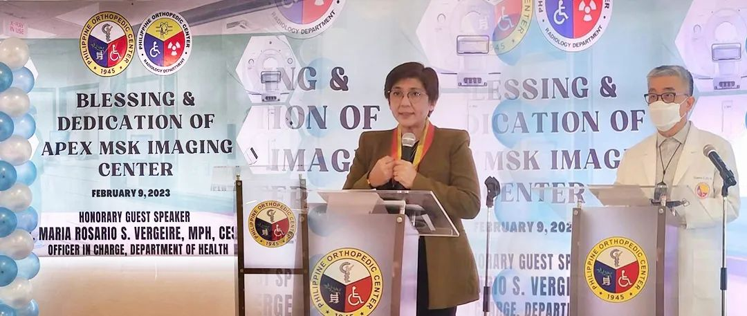 2月9日菲律賓骨科中心大樓正式剪彩投入使用,衛生部負責人Maria Rosario Vergeire女士到場并祝賀開幕!安健科技“悅畫”移動C形臂系列也正式走進菲律賓最具權威的骨科醫院。