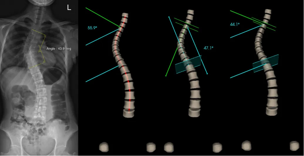 現(xiàn)在,隨著三維成像及AI自動(dòng)測(cè)量技術(shù)的出現(xiàn),對(duì)脊柱側(cè)彎的評(píng)估方面帶來(lái)革命性的轉(zhuǎn)變。WR-3D立位錐束容積成像技術(shù)可以重建出整個(gè)脊柱的三維圖像,并通過(guò)AI人工智能進(jìn)行自動(dòng)測(cè)量,從而對(duì)脊柱的側(cè)彎進(jìn)行更全面和更準(zhǔn)確的評(píng)估。